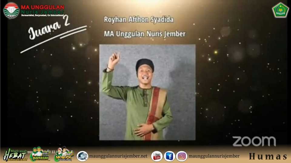 Berbekal Suara Emas, Siswa MA Unggulan Nuris Raih Juara 1 Cover Sholawat Ajang Hari Santri Nasional 2021