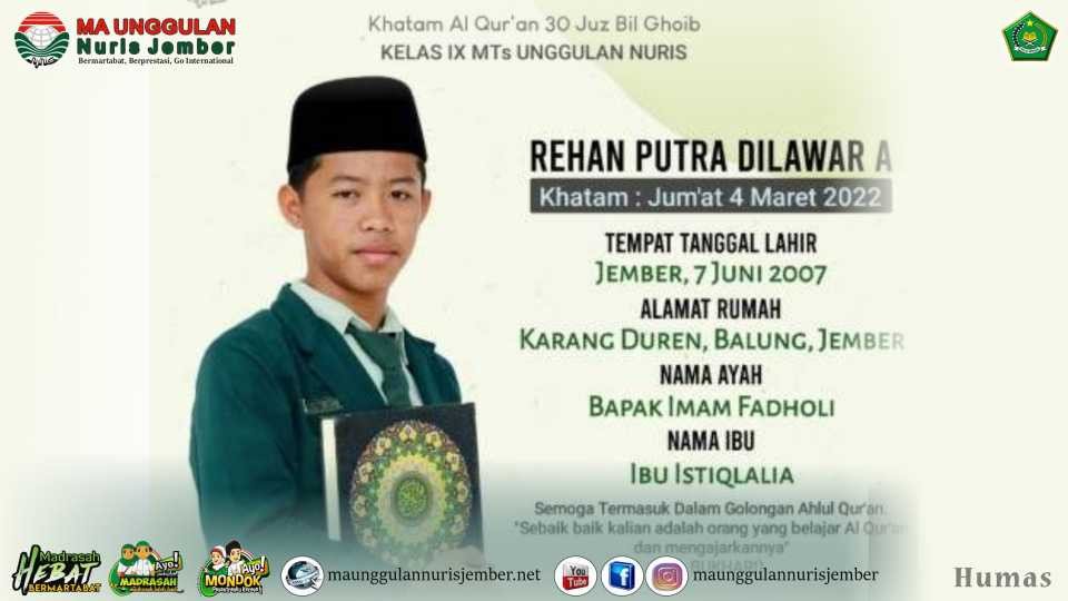 Tuntas Khataman Hafalan 30 Juz, Remaja asal Balung ini Berharap Rida Allah dan Banggakan Kedua Orang Tua